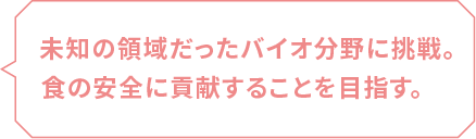高校でSDGsの学びに触れ、自分にとって未知の分野だったバイオテクノロジーに興味を持ちました。卒業研究のテーマは、食中毒の原因となるヒスタミンに関するもの。ヒスタミンを感知するセンサーには、基質阻害という働きによって精度が下がるという課題があり、私はこの働きを抑えるための研究に取り組んでいます。こうした経験を活かし、食品衛生監視員として食の安全に貢献したいです。