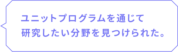 座学と実習を一貫して学ぶ「ユニットプログラム」では、専門分野を深掘りすることで関心の幅が広がりました。実験を通じて特に面白いと感じた分野が有機化学。卒業研究では、「アズレン」という物質を用いた新規化合物の合成に挑戦しました。仮説通りに進む実験ばかりではありませんが、想定外の化学反応から突破口が見つかることも。大学院では研究の応用にも挑戦し、社会に貢献したいです。