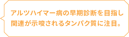 アルツハイマー病との関連が示唆されている「セマフォリン3A」というタンパク質に着目し、早期診断や予防法の確立に向けた研究に取り組んでいます。検証途中の領域のため、思うようにいかないときもありますが、それが基礎研究の醍醐味。血液中のセマフォリン3Aの濃度を調べることで、アルツハイマー病に罹患する可能性を判別できるような未来を目指し、大学院でも研究を継続します。